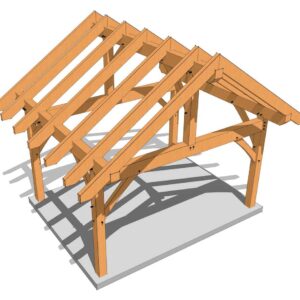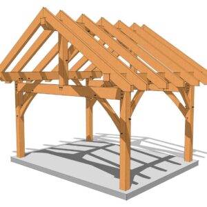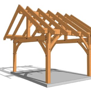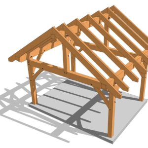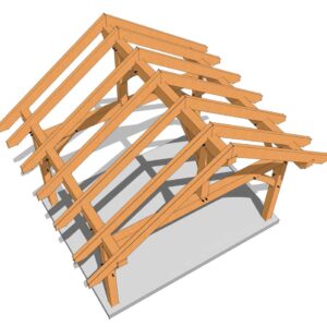 This 16' wide x 12’ deep two bent timber frame shed plan features an 8/12 roof pitch. While the plan has an 8″ roof pitch by default we have added the dimensions for 3, 4, 5, 6, 7, 9, 10, 11, 12-inch roof pitches to allow you the option to choose. This size and shape is perfect for a small cabin, workshop or storage shed, and the plans are easily customizable to suit your specific needs.