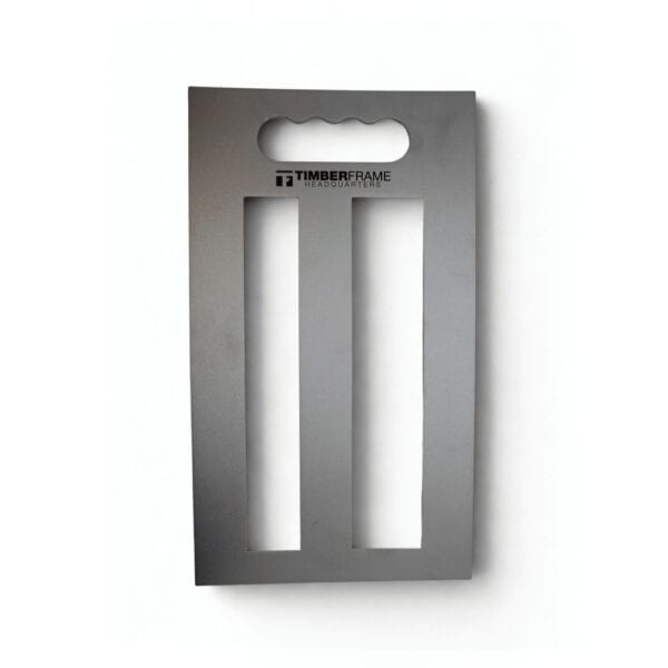 This combination 1-1/2” and 2” Tenon Checker Gauge will ensure that your tenons are accurate and consistent. Made out of nearly 1/4″ thick aluminum, this is a handy fixture to guarantee your timber frame goes together smoothly. No more mortises getting stuck – no more pulling out your chisel with a raising crew waiting for you!