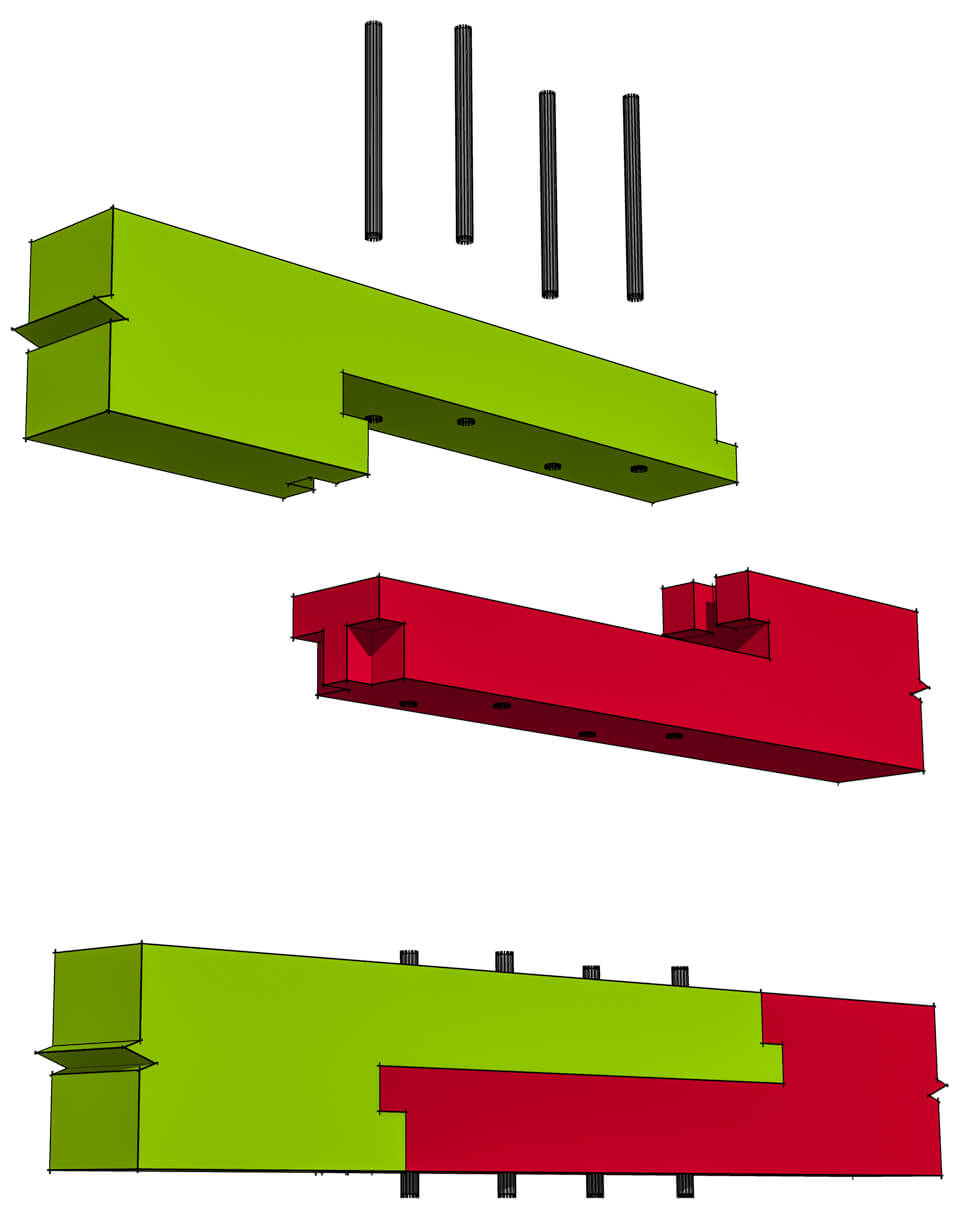 Like all other scarf joints, you can use this joint to create a longer beam out of two shorter timbers. The cogs in this joint are the t-shape projections in the tenon. Since they help lock the joint in place, they also increase the bending strength against horizontal loads. In this example the stop bladed scarf joint with cogs and pegs is secured with vertical hardwood pegs.