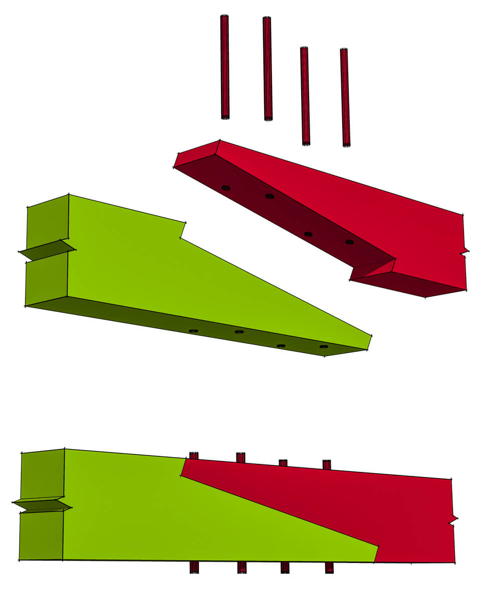 Home » Timber Frame Construction Details » Timber Frame Joints » Under Squinted Stop Splayed Scarf Joint With Pegs